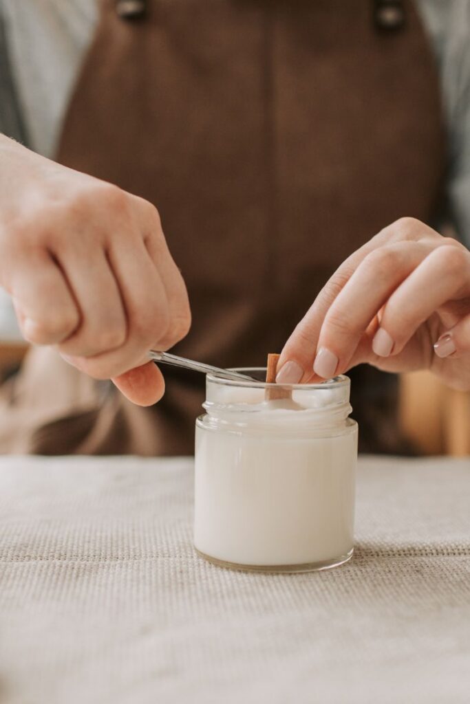 Jak je zrobić? Roztop wosk w kąpieli wodnej, dodaj kilka kropel olejku zapachowego np. ekstraktu waniliowego i barwnik, umieść knot w pojemniku, wlej wosk i udekoruj wierzch suszonymi kwiatami lub przyprawami.